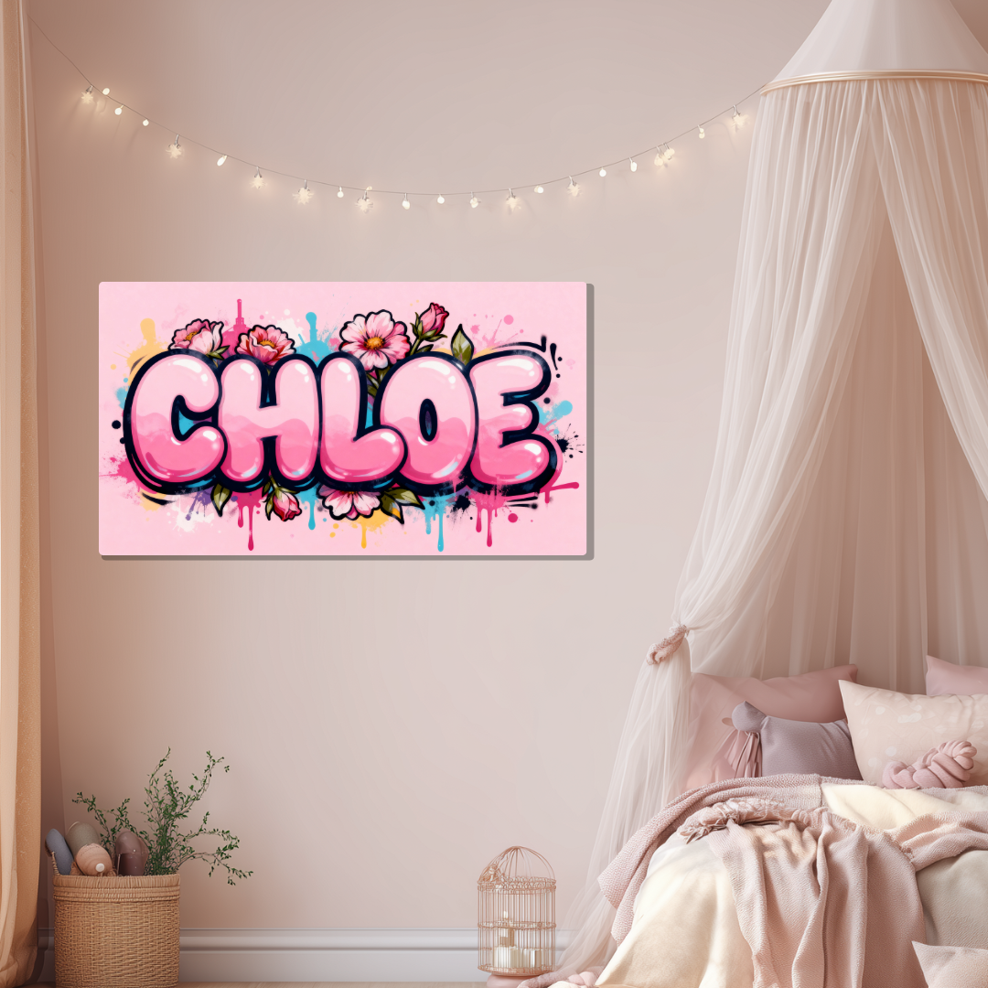 Tableau Prénom Personnalisé Graffiti Fleurs Rose